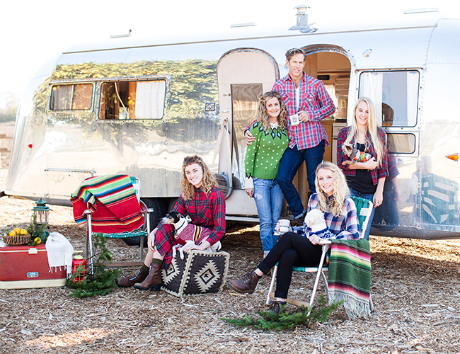 My kids have long known that when mom calls everyone together for holiday photos, they won’t be gathering for a quick pose in front of the fireplace. And now, as a Designer and co-owner of Archive, these photo shoots have only gotten more… creative. (The kids might use a different word.) This shoot in San Juan Capistrano was no exception.We had recently bought our dream Airstream, a mint condition 1957 Custom Model, which had only one owner since purchased from the factory, and stored in a barn for the past 40 years. We didn’t buy it just to add to the Archive stable of vintage trailers, it was our new home-away-from-home. My husband and I both grew up camping, but had tired of how much work it was, so we hadn’t camped for years. Our new Airstream “Baby” was going to change everything, and we’d be in the new glamping scene! [Sidebar: Glamping is harder than we thought. In fact it’s a lot like camping. Regardless, winter camping in California is spectacular and romantic, so this was all the inspiration I needed for our holiday photo shoot.When I called my treasured photographer friend Kristen of Chris & Kristen Photography, that’s when things really escalated. Kristen’s enthusiasm and energy is like throwing gasoline on my creative fire. Oh yes, we’re going to bring the Holiday Cheer, and we’re not leaving anything out: Airstream? Yes please! Abandoned orange orchard? Why not! Dogs in sweaters? Um, of course!? “Let’s make a day of it!,” she said. And we did.My husband hooked up the trailer and I rounded up some of my favorite vintage camping items from Archive Rentals inventory. The girls, who are artists themselves, chose what they wanted to wear; my husband wore what he actually wears camping, which made sense to him; and I dressed to match my dogs, which made sense to me. Naturally, the morning of the shoot everyone was bickering and uncooperative. (Why would this holiday shoot be any different??) But even the saltiest crab is no match for the charm of Chris and Kristen Maple. Ten seconds into the shoot we were all laughing, playing and truly enjoying our day of family “camping.”We took our turns in front of the lens and relaxed in between, soaking in the peaceful setting on an idyllic fall day. Warm sun but crisp chilly air that smelled of fresh oranges and sagebrush. Sure it was another one of Mom’s highly curated holiday photo shoots, but it also turned out to be the real thing: An unexpected and perfect holiday family memory.