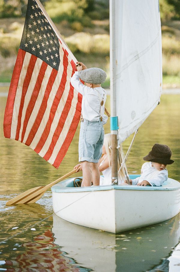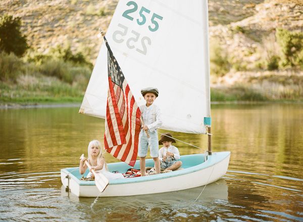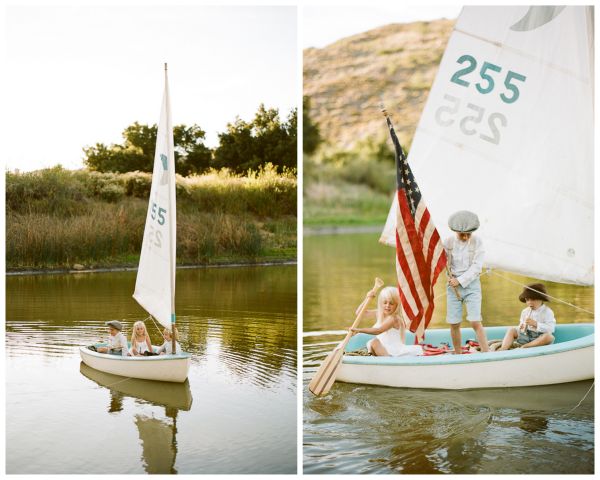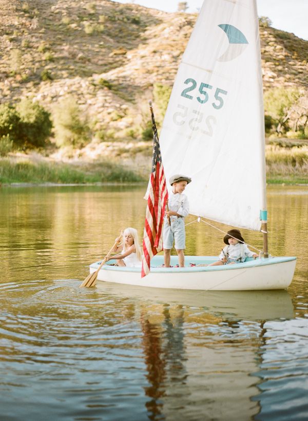 We’re so excited to share this adorable American themed photo shoot with you, but even more excited to share the story behind the sailboat! The styling for this shoot was done by Kayla O’Rourke and Tylene Howarter. Tylene’s mom was a Mariner Scout in Newport Beach. She loved to sail and saved for almost 3 years to buy her first boat in 1963, when she was just a junior in high school. This shoot features her grandkids who are now learning how to sail! Tylene and her hubby Sean restored it so it would be fit for a sail with the kids. They ended their photo shoot with a picnic on the shore, complete with mom’s homemade blackberry pies! The perfect way to end our Inspired by America week here on IBT!