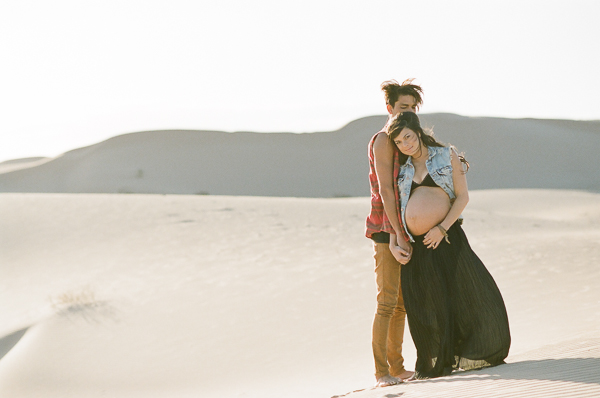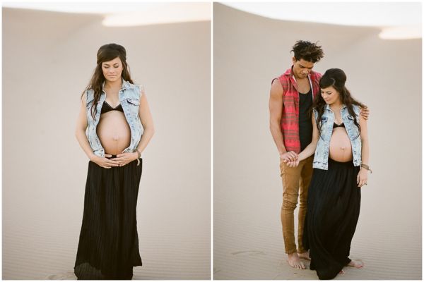 We just can’t get enough of maternity shoots! We are loving this creative indie maternity session in the sand dunes by Acres of Hope Photography. We are loving this mom’s outfit…the black pleated maxi skirt and the faded denim vest. We love this maternity shoot because it features her hubby and his indie style, too. What a unique tribal print vest and skinny khaki pants! The couple’s indie style is too cute! And we are dying over that tent! Just got to love this couple’s maternity sesh!