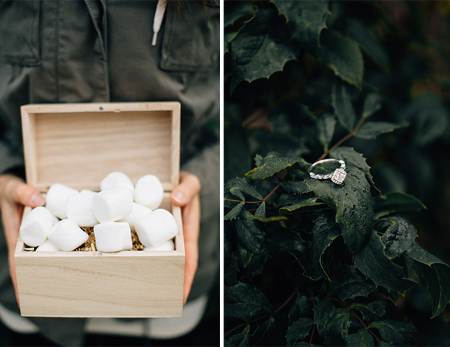 I had no doubt at that moment of what was underneath and my racing heart was keenly aware of what was about to happen as well. As I plunged my hands into the bed of mallows, there it was … a box. I stared in disbelief at the man that was about to change my world and relationship status forever. This well spoken man barely got out his rehearsed words of affection because of nerves taking over and neither of us remember exactly what was said. He asked me to stand so that he could have the honor of getting on one knee, and there on a cliff overlooking the golden ocean he asked me to be his forever.