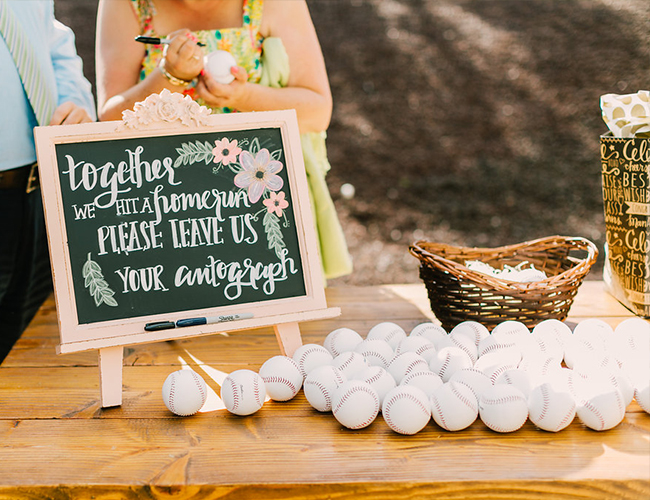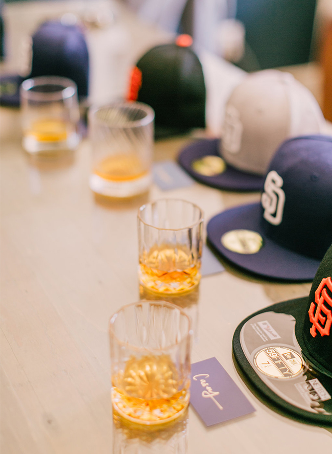 Their love of baseball and the San Diego Padres was incorporated into their sign in as the groom came up with the idea of having their guests autograph baseballs and drop them into a lucite, home plate shaped box. Each groomsmen was also gifted a custom fit baseball hat for their favorite team to wear during the reception.