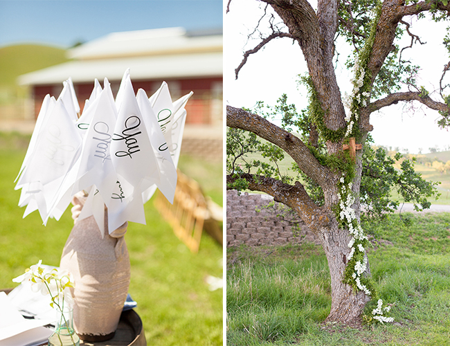 On my family’s 2,000 acre cattle ranch in Northern California, Adam and I were blessed with the most picturesque setting: after a winter with nearly no rain, we received just enough sprinkles to let us gather in a seemingly never-ending, emerald green, sun drenched heaven. We were wed under the giant oak tree where I played as a little girl. Our reception was held in the red barn I grew up in, climbing haystacks and saddling horses. My family worked endlessly to turn a working ranch into a wedding haven of our dreams.