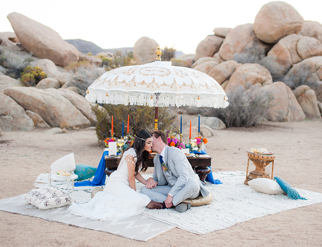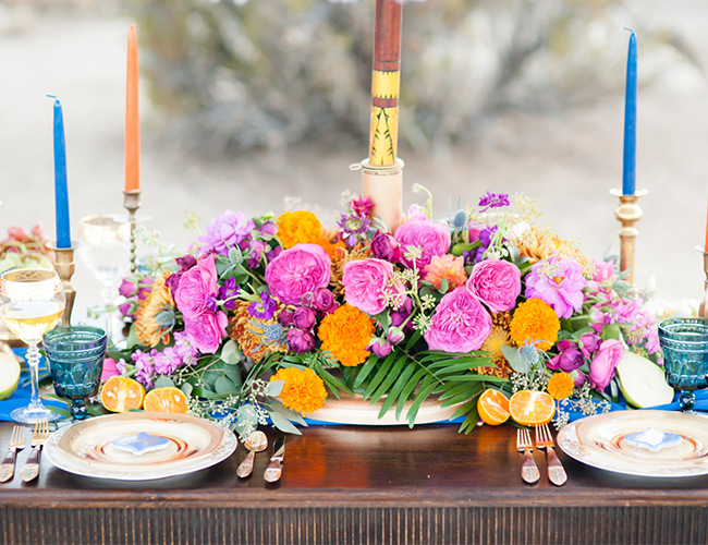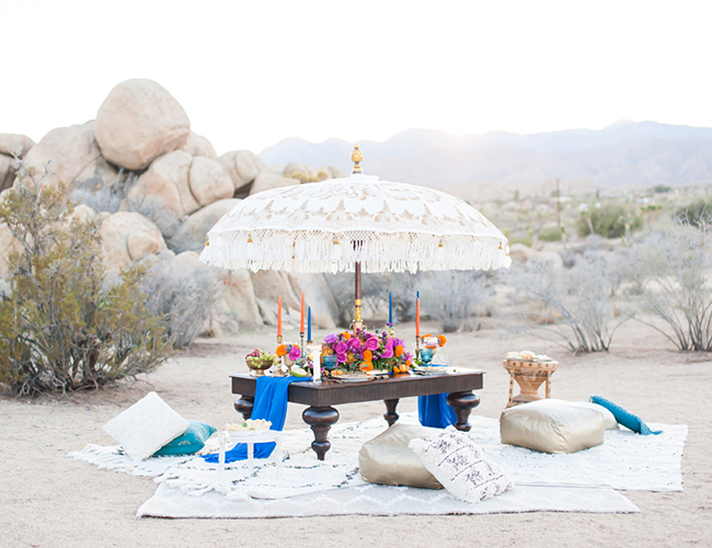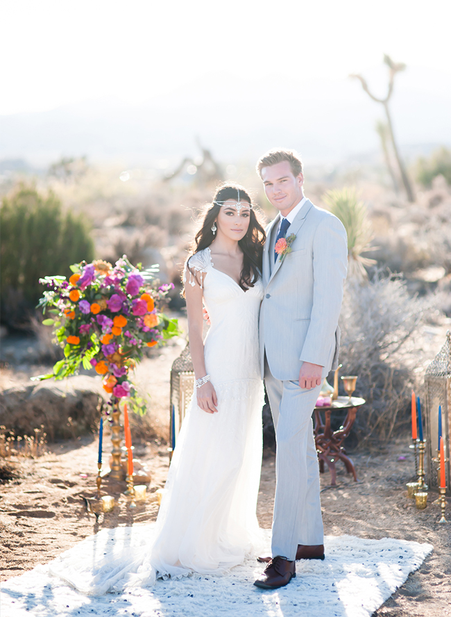 Recently, when it comes to wedding inspiration, we’ve been all about color! This bold Moroccan wedding shoot comes at the perfect time. With magenta, peach, and blue florals and a cake just as bright, it is unique and fun to look at! The planners at Two Sisters Events Co. dreamed it up after setting foot on the desert-like venue. They then decided to bring Morocco here – and we’re SO happy they did!