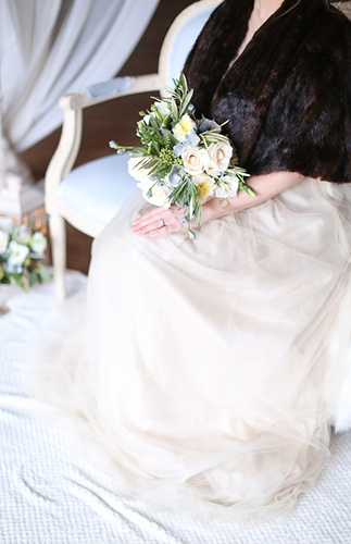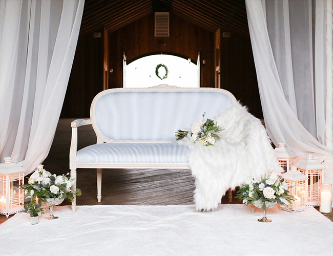 Logan of Real Southern Accents designed this winter wedding shoot at Castle Hill Cider in Charlottesville, Virginia. By combining cozy elements like luxurious fur throws with rustic white florals arranged in mercury glass centerpieces, this candlelight shoot is meant to inspire winter brides. From the bride’s gold J. Crew bridal gown to the cookie and hot cocoa bar, every element of the shoot lends itself to a cozy, romantic wedding day!
