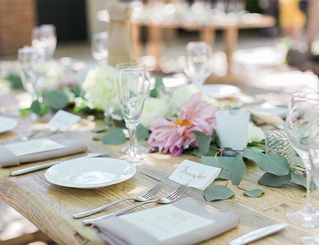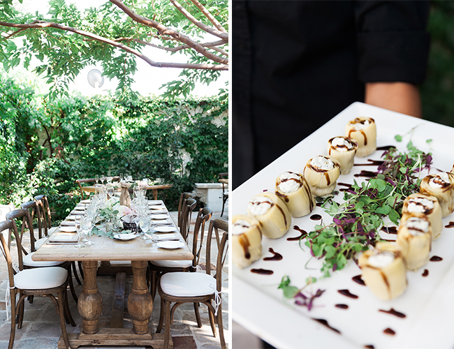 Take a moment and step into this romantic garden on our wedding blog today! This intimate villa wedding in San Jan Capistrano enveloped everything the Bride & Groom hoped and imagined. Long wooden tables covered in candles and eucalyptus leaves set the stage for the tranquil outdoor reception and the covering of trees give the wedding an ultra personal touch. RomaBea Images was there to capture it all and had these sweet words to say about the day: