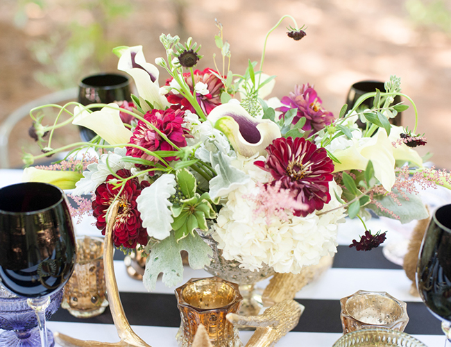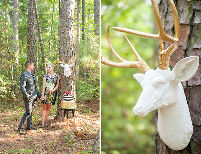 While you’re getting all glammed up for your next holiday party, check out this dapper couple on our wedding blog today! They took the forest by storm in this woodsy engagement shoot complete with a striped and sparkly table for two. They pulled this shoot together as an upscale -but still down to earth (literally)- engagement celebration to capture their love before their wedding next Spring! Their photographer, Mikkel Paige Photography, offered up their inspiration behind the shoot: