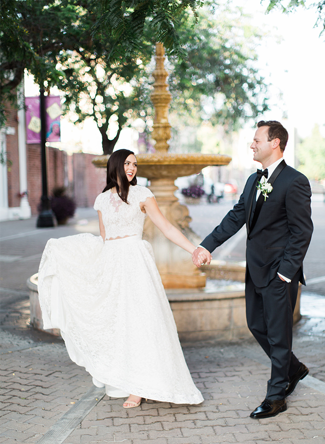 Can you say swoon! This peach estate wedding on our wedding blog today is giving us major Southern/French feels! It’s a beauty, for sure. Lovelyfest, you made our dreams come true inside this gorgeous estate! (Remember when they wow-ed us with this wedding?!)Modern with both a two-piece and blush wedding gown, and vintage in venue, furniture, and decor – it’s a winning combination.
