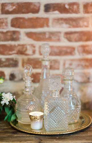 Cocktail hour was made complete with multiple vintage seating lounges from Archive Vintage Rentals‘ unique and timeless pieces. The Estate has a variety of nooks that are just begging to be filled with beautiful furniture, and guests love cozying up on these pieces with a good cocktail! Instead of a typical bar, this one was made of a weathered vintage hutch and was accented with Lovelyfest’s vintage crystal glassware.