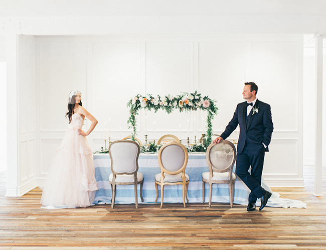 When creating a styled shoot, we’re always thinking ahead to what future brides want to see. Romantic, airy, light and fresh editorials are abundant right now, and we absolutely love this trending theme because of one thing: it’s not trendy! We think this is a theme that will stay in style forever, and romanticism in weddings is definitely not going away. Being inspired by French architecture, gardens and fashion, we designed this shoot to have a romantic, French, industrial flare filled with simplicity and modern accents.