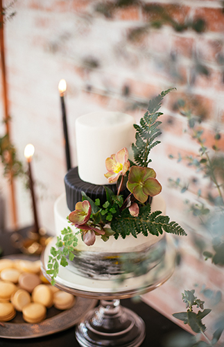 Additionally, I liked the idea of incorporating mixed metals to continue the industrial vibe. The metals ranged from bronze, gold, and silver to copper and brass. My talented make up artist Elona, was able to perfectly tie the mixed metals into the makeup, which I was really happy about! The cake artists also blew me away with how perfectly they combined the organic look, mixed metal idea, minimalism and industrialism.