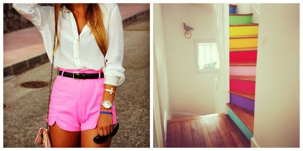 [hot pink shorts// rainbow stairs]
