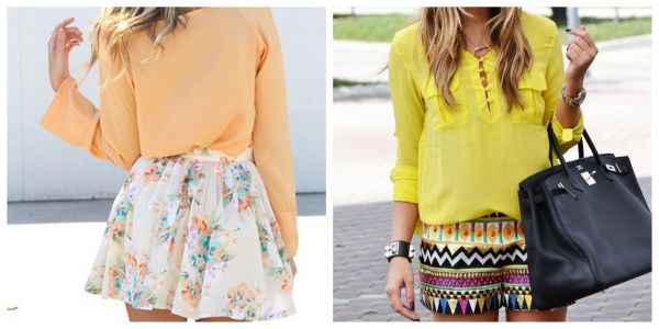 [floral skirt// tribal print shorts]
