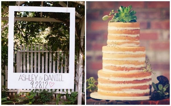 [giant polaroid photo booth idea + “naked” cake trend]