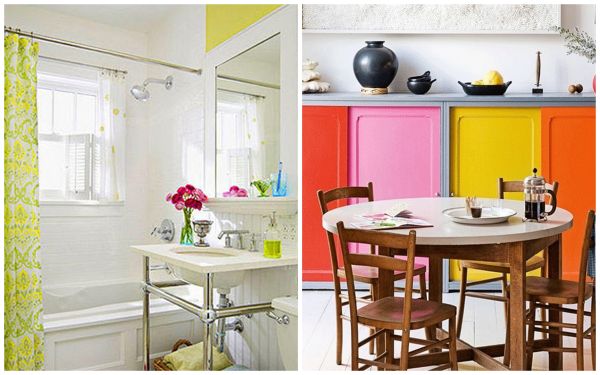 weddwellgrow pinterest[pops of neon in the bathroom + bright kitchen cabinets]