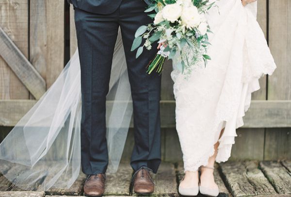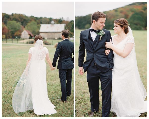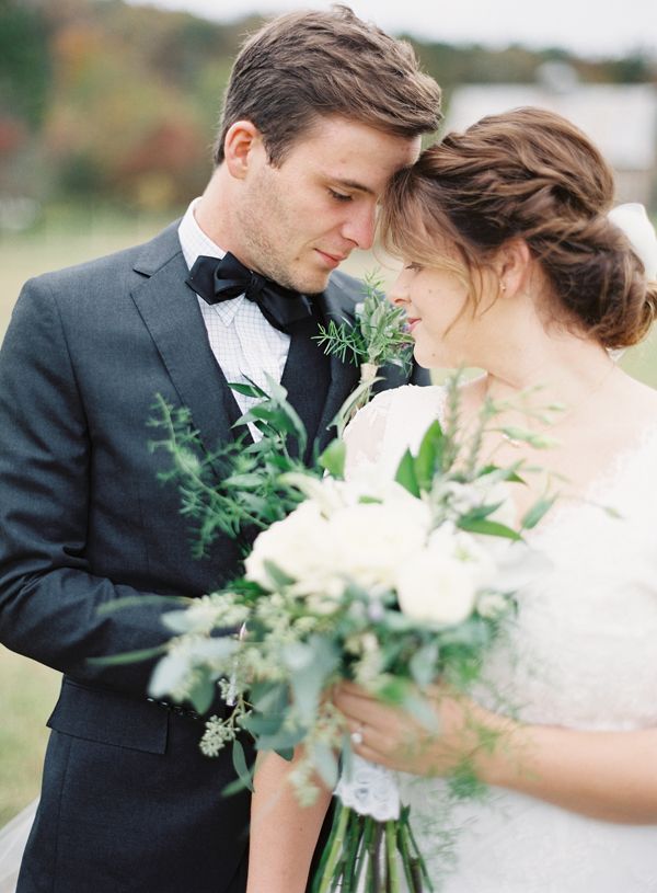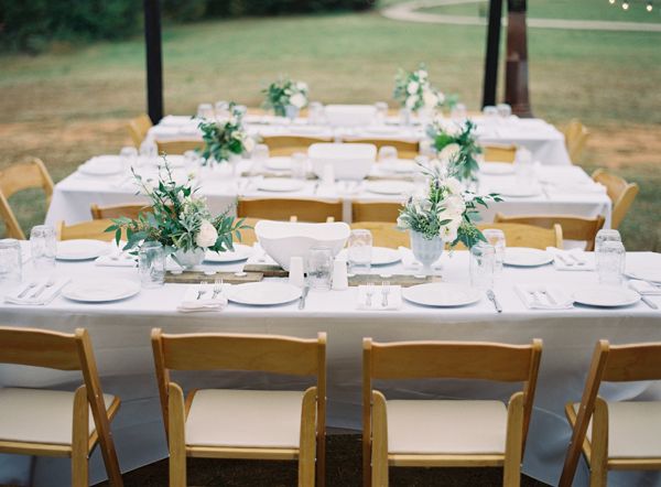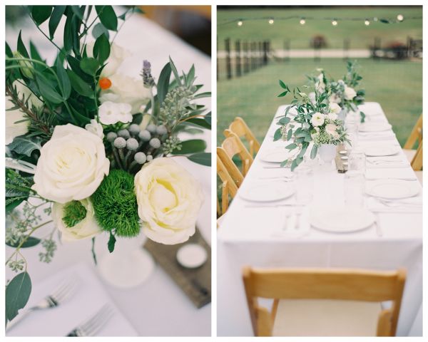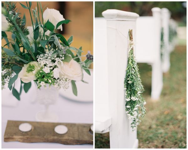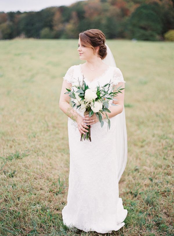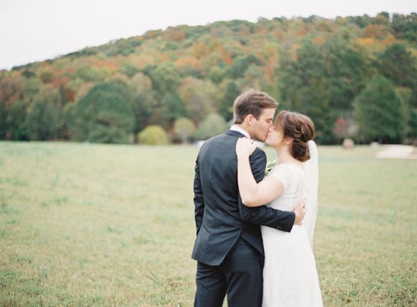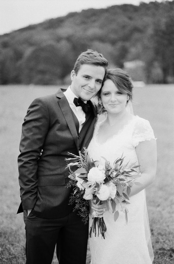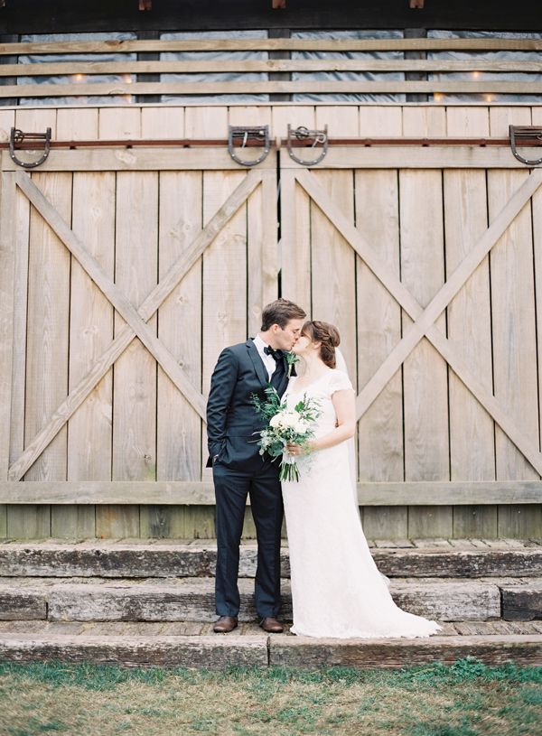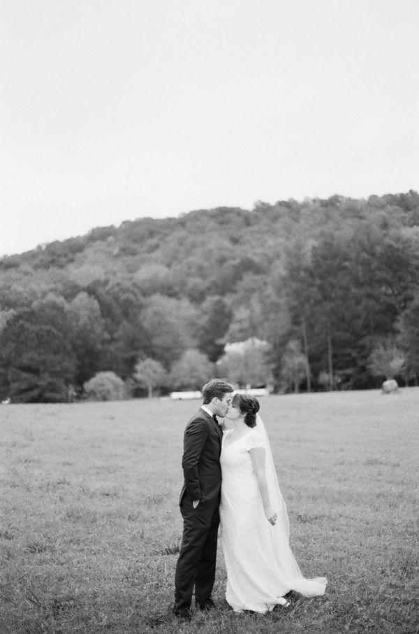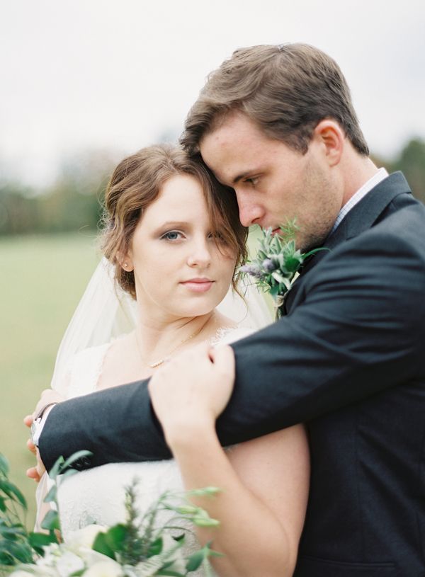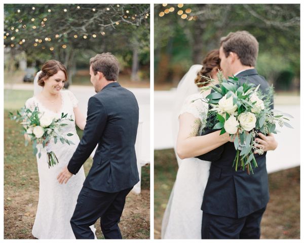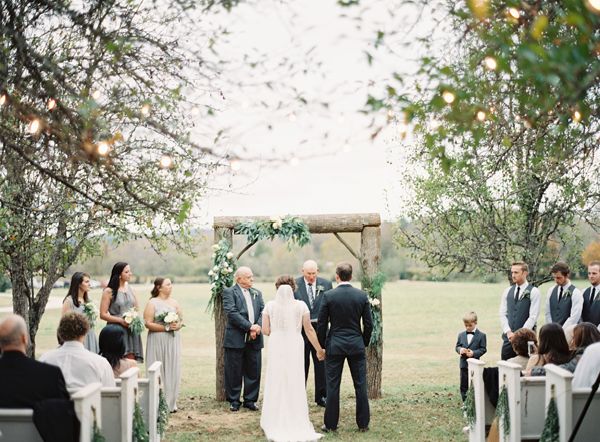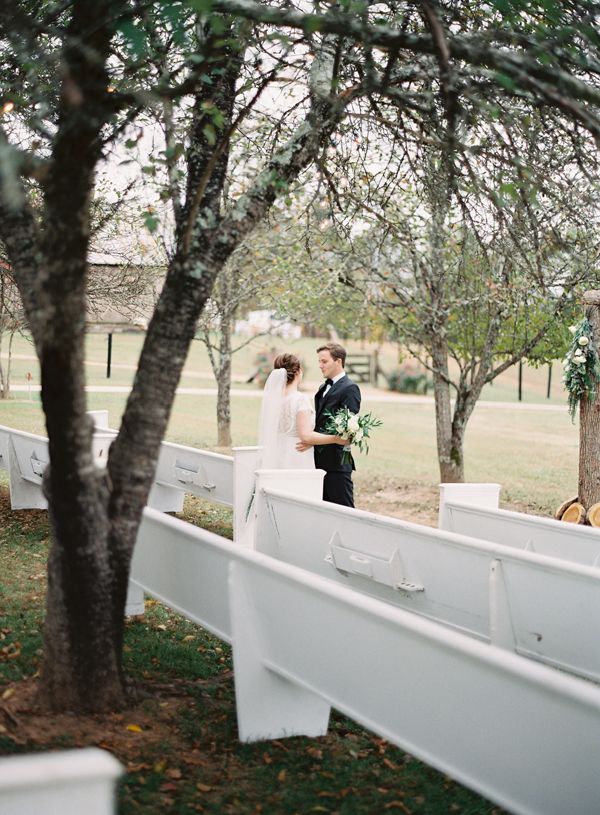 There is something so unique and fantastic about a simple wedding with natural details, colors, and location.  Laken and Tyler were married at J&D Farms, about an hour from their home in Alabama, which turned out to be the perfect backdrop for their big day.  They brought in 16 white church pews for their ceremony seating and hand crafted an amazing wood altar that was simple enough to let the orchard’s beauty still shine through.  Her bouquet, filled with green herbs and soft, creamy roses and peonies, popped perfectly against her delicate lace dress and fit the vibe effortlessly.  The hay bale seating for the reception and cafe lights topped it all off to make this one of our very favorite country weddings of all time!
