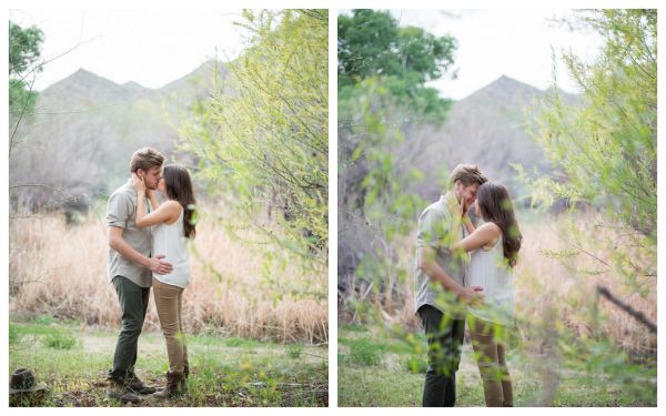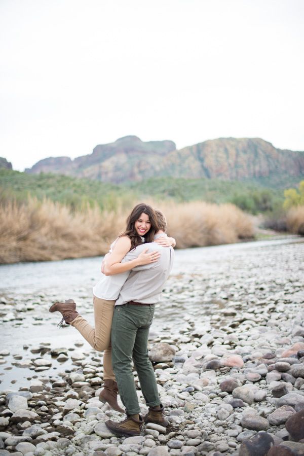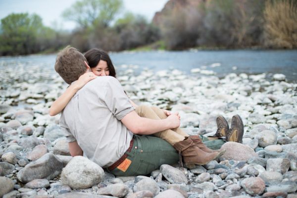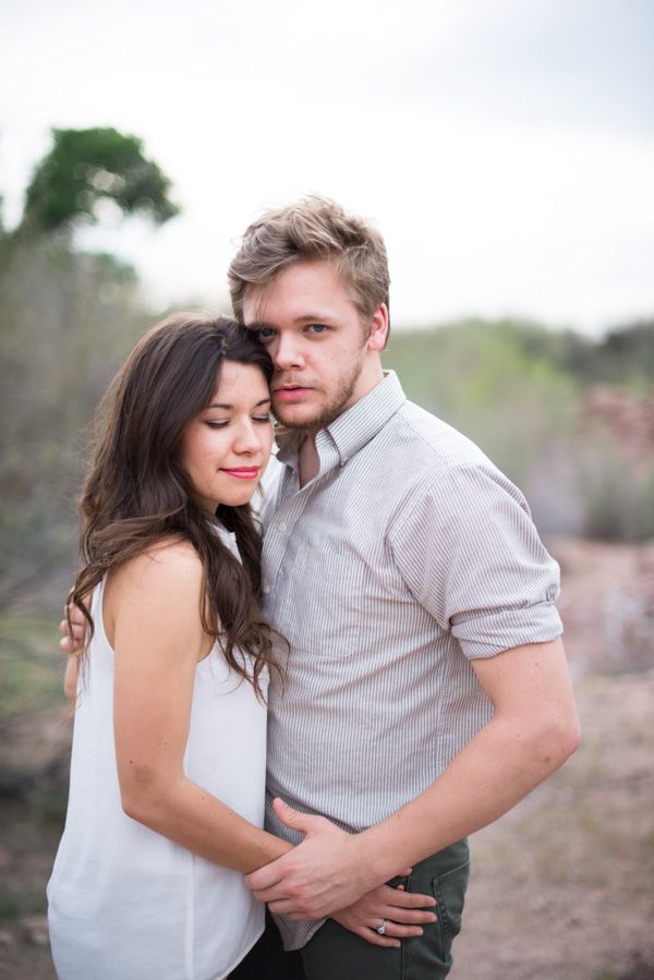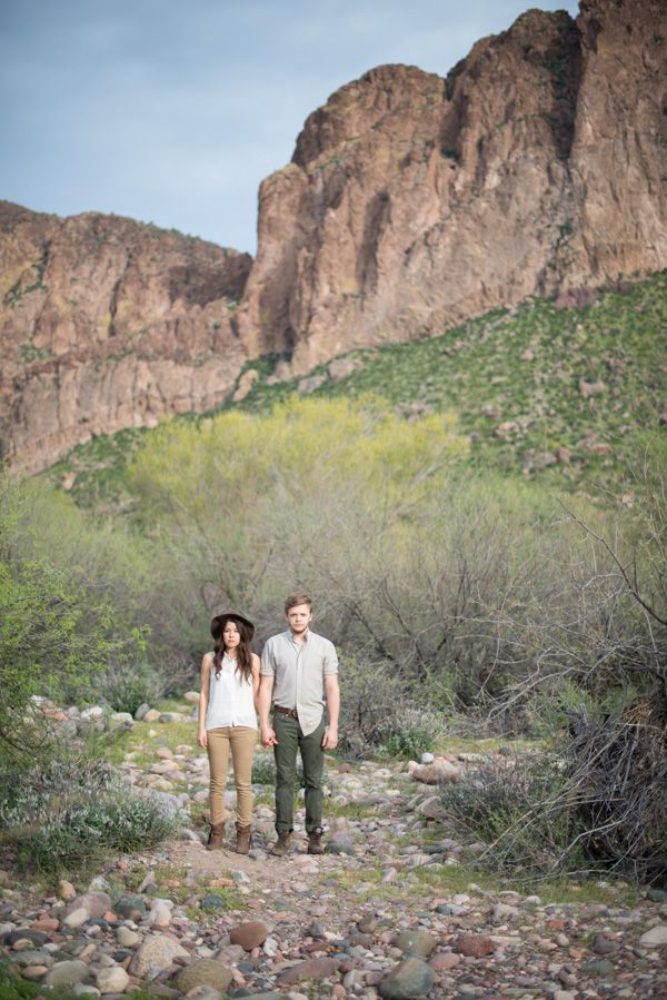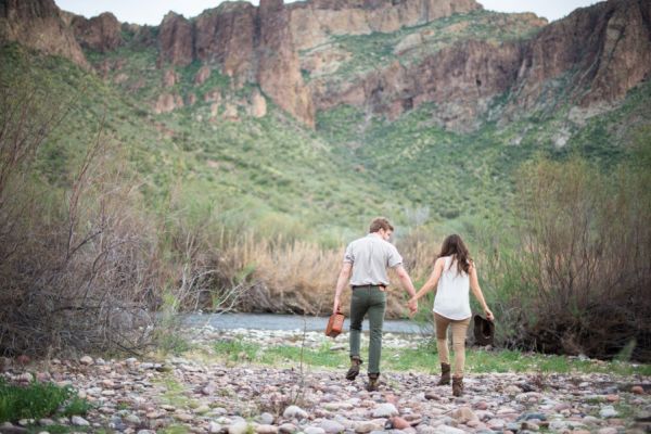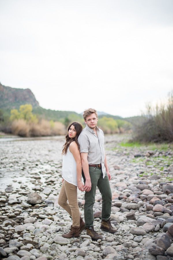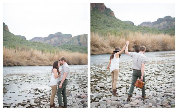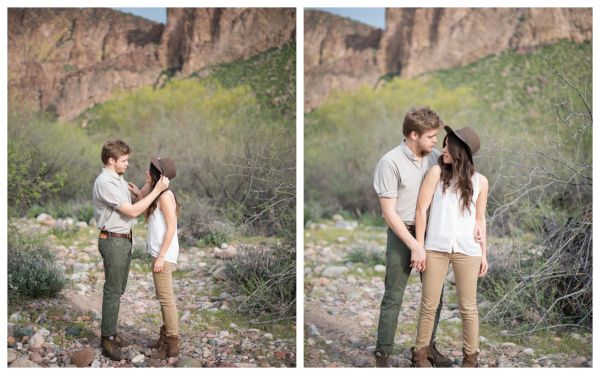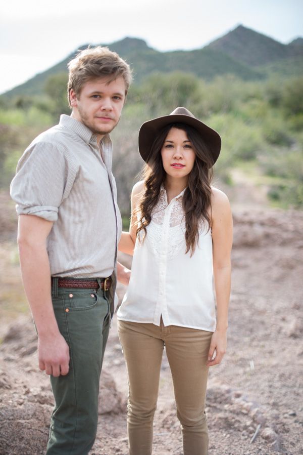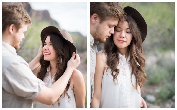 Millie and Jonathan are two sweet souls with a deep passion for art and creativity that draws them together. These two are lovers of out-of-town adventures, so we snuck away to the quiet space of Saguaro Lake in Arizona for a relaxed and stunning setting. Knowing the surroundings would be so beautiful, Millie and Jonathan went with soft, neutral colors (with one exception–a pop of red lipstick) that wouldn’t be distracting to the colors of the desert and mountains, and to allow for their love to be the true focus of the shoot. Having a long distance relationship, Jonathan has been sending Millie sweet packages since their relationship began from creative pieces made by hand (he’s a graphic designer) to articles of his favorite styles for her to wear. The hat Millie is wearing is one of the very first pieces Jonathan mailed to her from his home in Chicago, so it plays a special role in their relationship. Charity Maurer shot these images while Jonathan visited from Chicago, and soon, they will get to be in the same state. Until then, these images are visual reminders of the deep love they share for one another–even from states away.