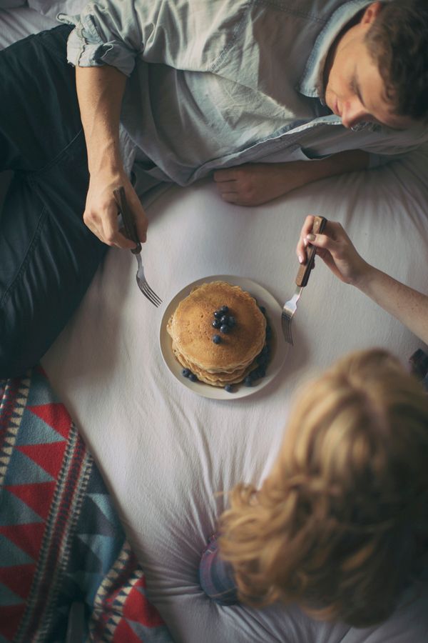 There’s something so very intimate and natural about this love shoot that we just couldn’t get enough of. Couples spend so much time together in the mornings and evenings in the comfort of their own home, cooking and cuddling in bed. Alixann Loosle decided that she wanted to show the beauty of these times spent together, and how they bond couples together and make them feel safe. What resulted is the sweetest morning with these two love birds, complete with blueberry pancakes and flannel.