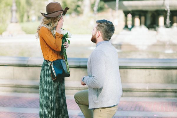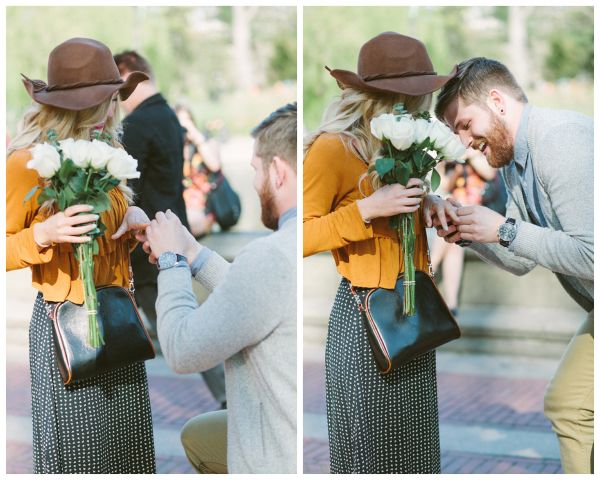 After they enjoyed a classic New York lunch they strolled towards Central Park to execute his plan. Blaine then disappeared into the crowd. Without Amber noticing he walked over to a guitarist and asked him to play something lovely. It was then when Blaine popped out of the crowd unto the steps of Bethesda Fountain to get the crowds attention. At the top of his lungs he professed his love and affection for Amber. With beautiful white roses in hand he got down on one knee and asked her to marry him. Tears streaming down her face she said, YES!