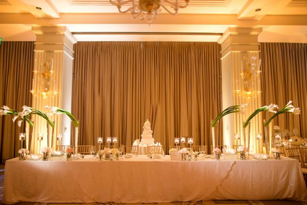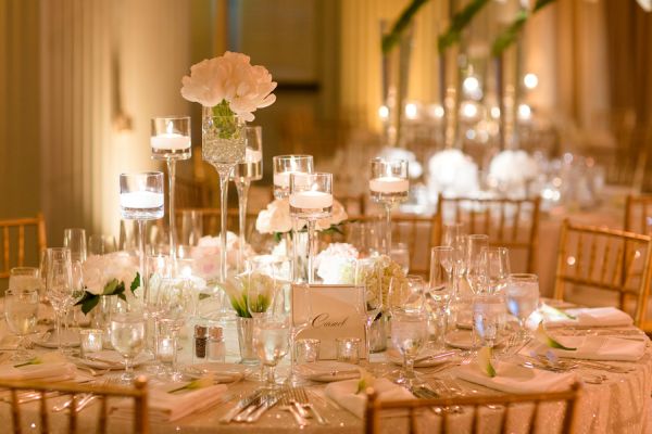While we love a good homemade, DIY wedding, there’s also something so magical and romantic about a big, ballroom wedding. This one, sent to us by Katelyn James Photography and designed by Details Details Wedding and Event Planning, has all the elements of a chic, elegant, and classic wedding. From the amazing classic getaway car to the grand ballroom filled with sequined linens and gold chivari chairs, this wedding oozes class. We are head over heels for the minute citrus details in the cocktail areas and the hanging lilies by Ed Libby are a feature we’re sure all the guests were gushing about!