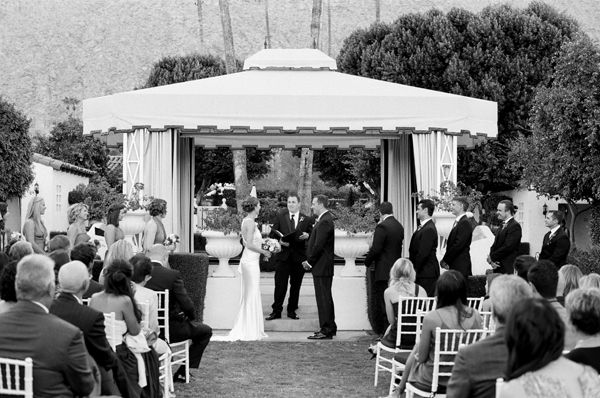 Jen and Ed’s wedding was inspired by New York where the couple met and held in sunny Palm Springs, California. They picked the The Viceroy Palm Springs because of its modern chic decor, and invited both families to stay for the weekend. The bride and her mom crafted much of the wedding decor themselves, and they really made sure that the whole wedding was a family affair. They even had Ed’s brother perform the ceremony! Ed loves Irish music, and during the wedding, Jen surprised him with a bagpiper! How cute! From the gorgeous florals by The Vine’s Leaf to the poignant family touches, this wedding is truly one to be inspired by!
