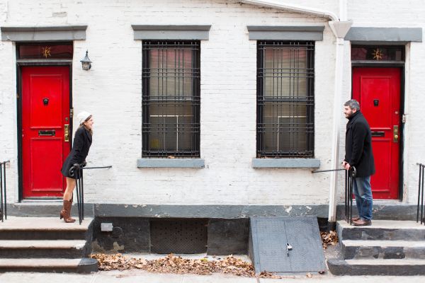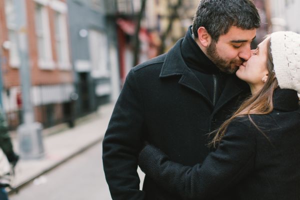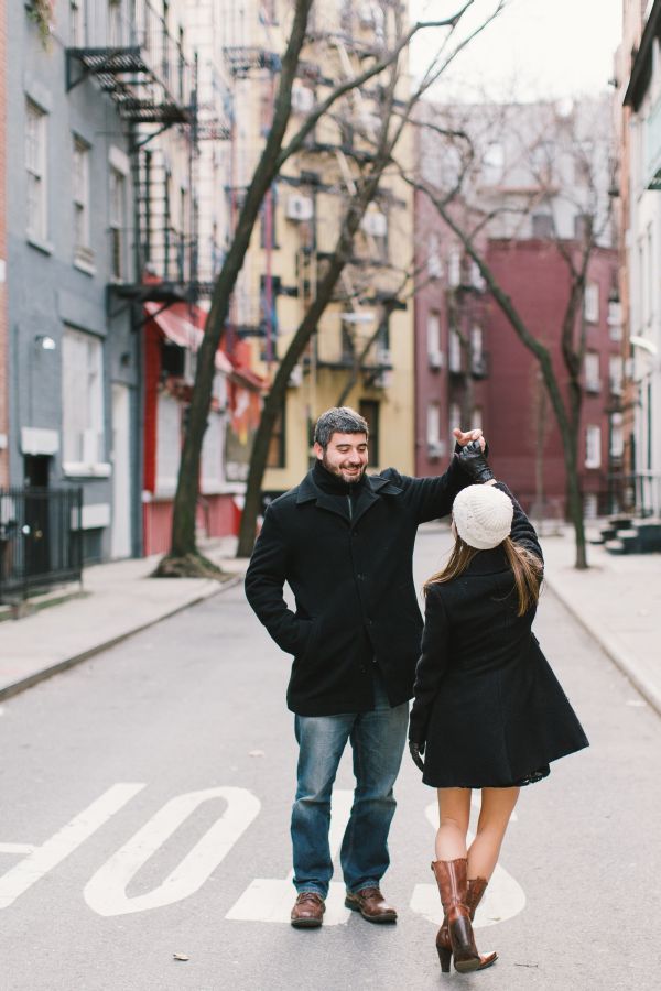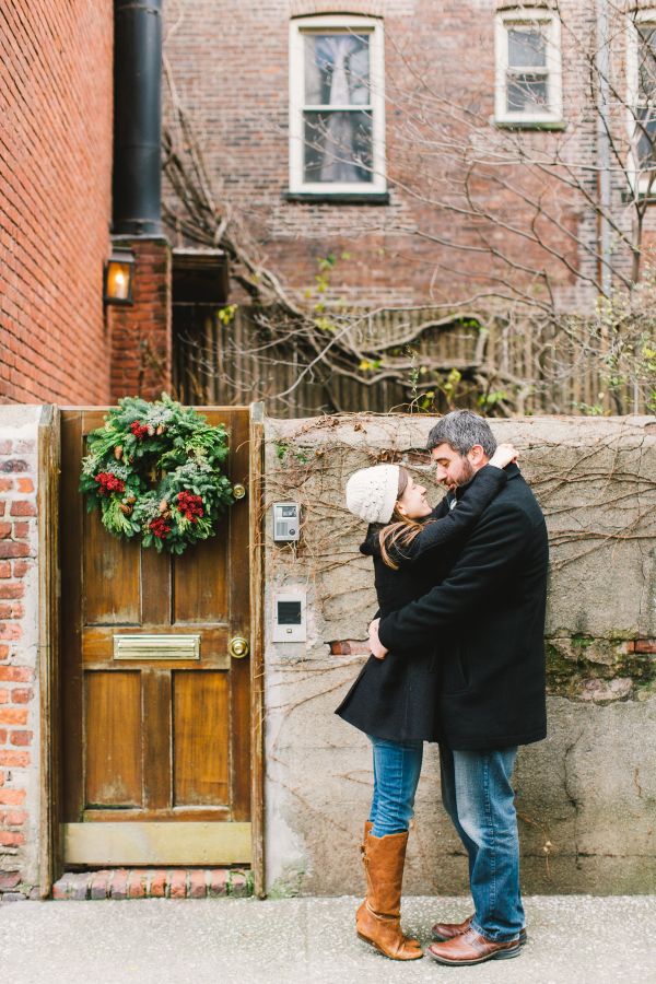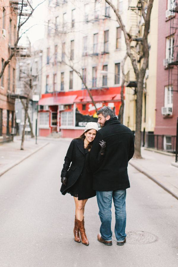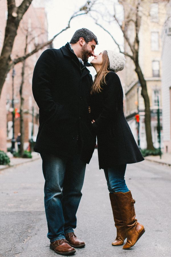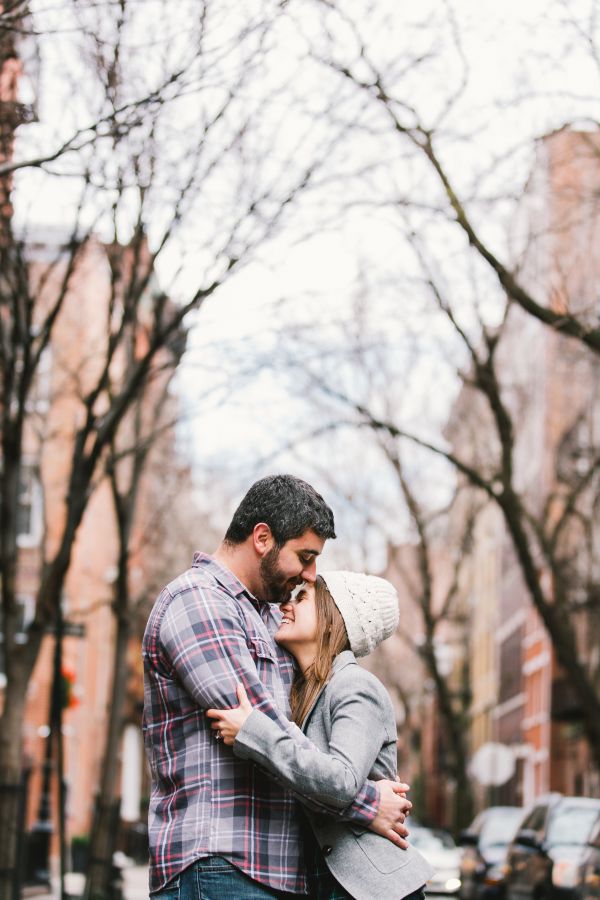 Everyone loves New York at Christmas time so how could we resist this Greenwich Village wintery engagement session! Elena and Derek live in Philadelphia and wanted to find an area of New York that would remind them of Philly. Greenwich Village was perfect. They loved the laid back feel, quaint streets and unique shops that fill this neighborhood. It was a chilly morning so they decided to warm up at Bosie’s Tea Parlor where they had some tea and sweets and the couple reminisced about the day Derek proposed over dessert.