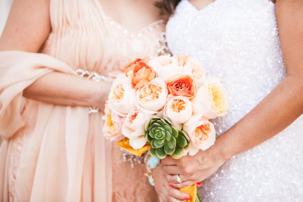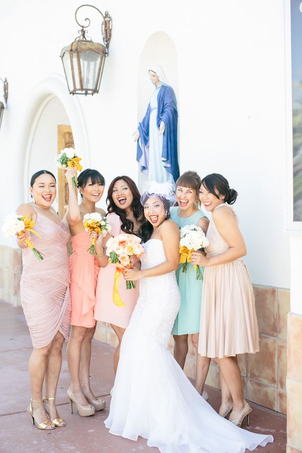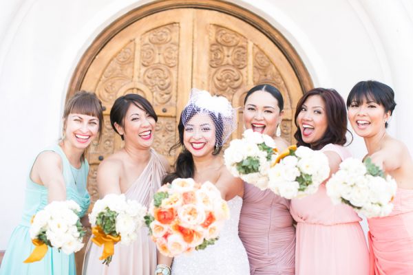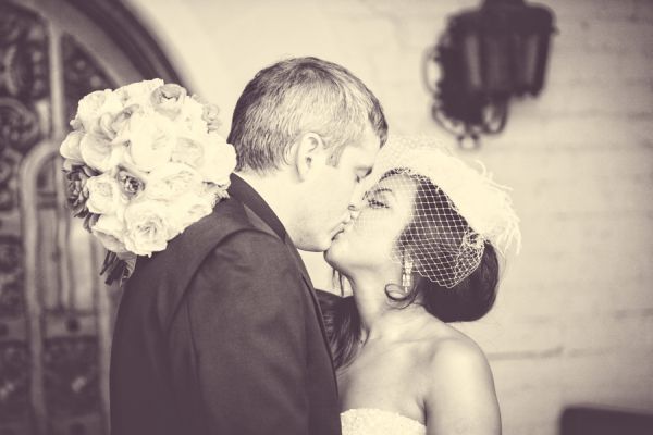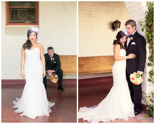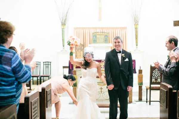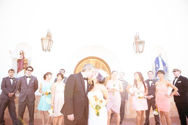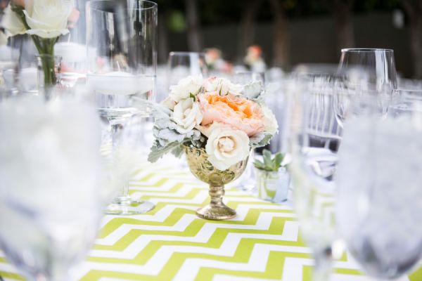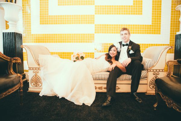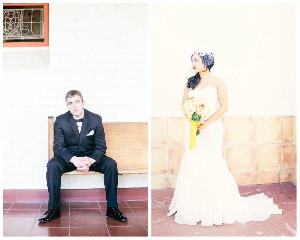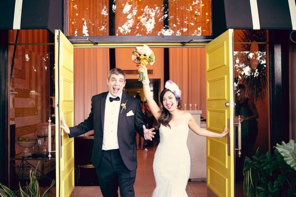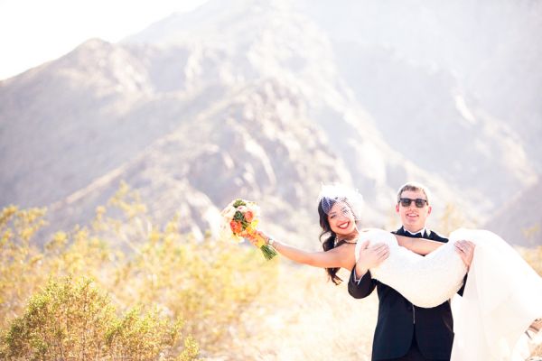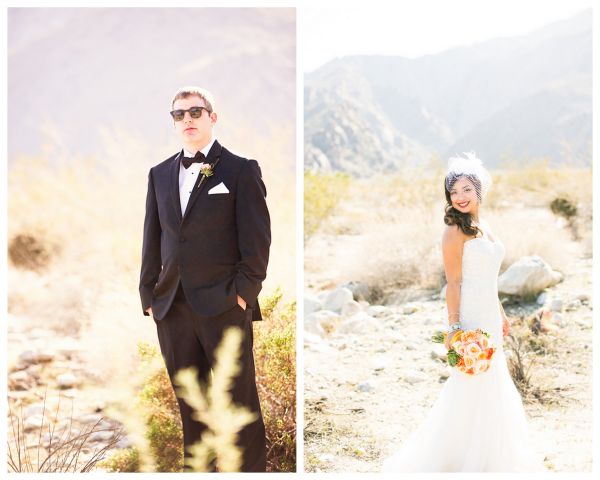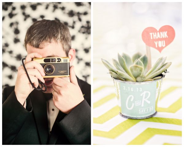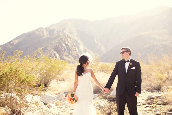 It looks like this trendy bride and groom found the perfect location for their traditional meets unique wedding! They tied the knot in Palm Springs at an old Catholic church and then headed over to the amazing Viceroy Palm Springs for their fun reception. We fell in love with the groom’s classic bow tie and the bride’s vintage birdcage veil, but these aren’t the only things we loved about this wedding. From the green chevron table runners to the sweet succulents they gave to guests as favors, this wedding has truly taken our breath away.