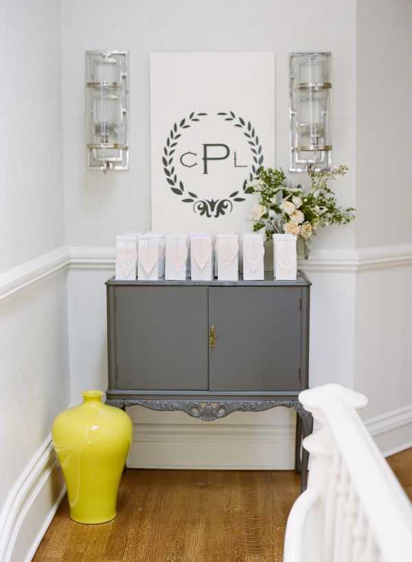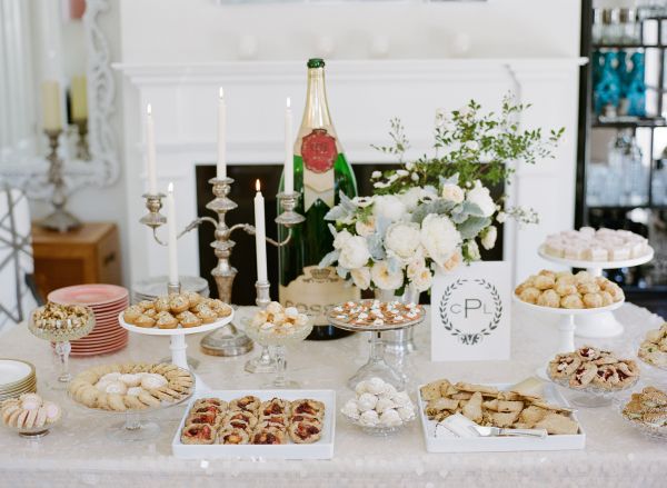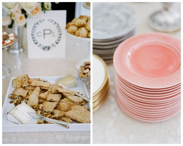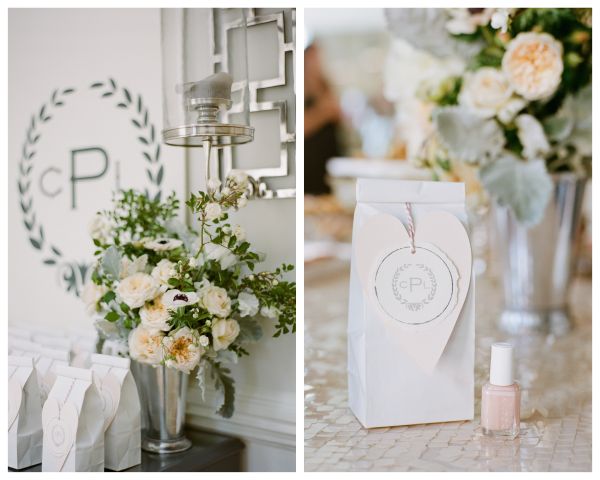 Her casually elegant Napa wedding is coming up fast (June 15th!) but first she wanted to create a shower that was something totally different. They decided on an extra girly vibe with blush pinks and gorgeous ivory accents. And we love that navy monogram they used throughout!! It’s the monogram they are using at the wedding but Crystal couldn’t wait to share it at the shower in a way to honor her husband-to-be. So many great details to share from the One Hope Weddings cocktail station (which looks delish…freshly squeezed grapefruits?!) to the cute little favors filled with “Blushing Bride” Essie nail polish.