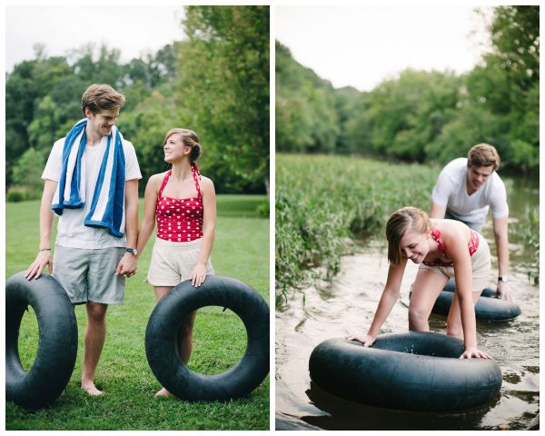 What could be more quintessential “summer” than tubing down a river, biking along a dirt road, and dancing in an empty field with the one you love!? We are basically head over heels for this lovely summer engagement session by Jennie Andrews Photography! It makes us want to sip on some cold lemonade, dip our toes in the water, and lie on a giant picnic blanket underneath the stars. How cute is her retro style and that vintage swimsuit from Modcloth too!?