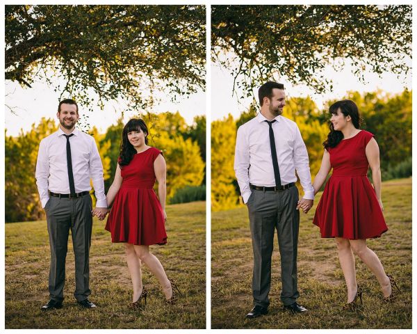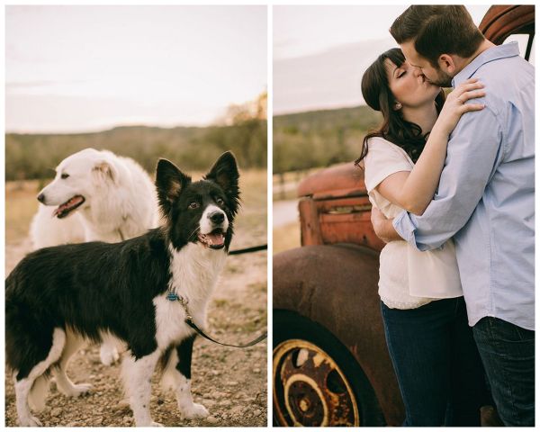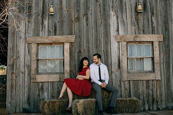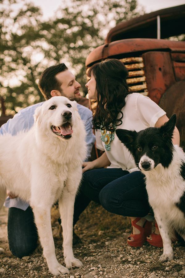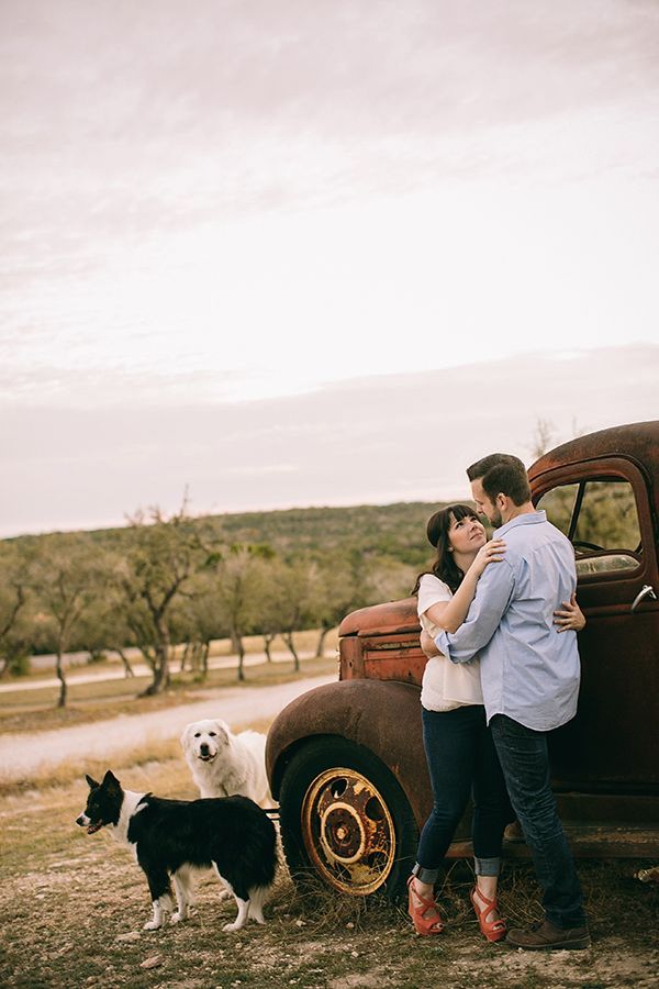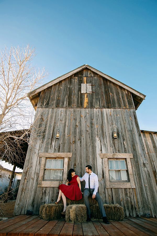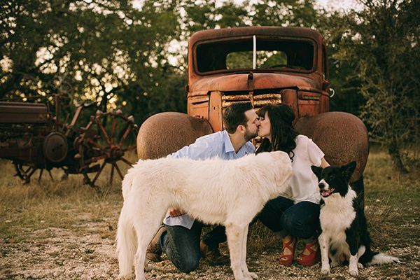 If you’re from Texas than what could be better than a rustic engagement session in a barn?! We’re loving this shoot with it’s old beat up truck, the perfect run down barn, and their cute (and excited!) pups! The bride to be is so fab in her stylish outfits among the vintage setting and that red dress is the perfect pop of color!