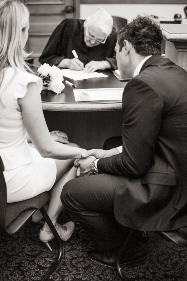 Recognize these two? Probably because we featured their amazing intimate backyard wedding last month! But today we’re sharing their beautiful elopement story at the swoon-worthy San Francisco City Hall. Because the groom is from Australia, these two had to get a started on the visa process and what better way to celebrate the occasion! Before their actual wedding ceremony in Montecito, the bride and groom gathered their parents and brought along the talented Michelle Warren to capture this special day when they “officially” became man and wife. The simplicity is refreshing and their smiles say it all!