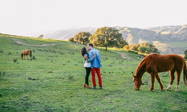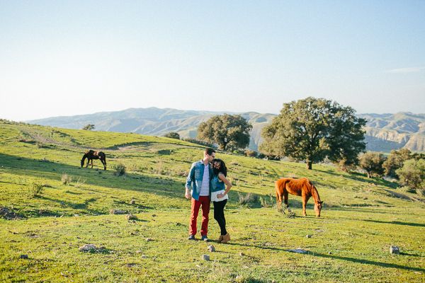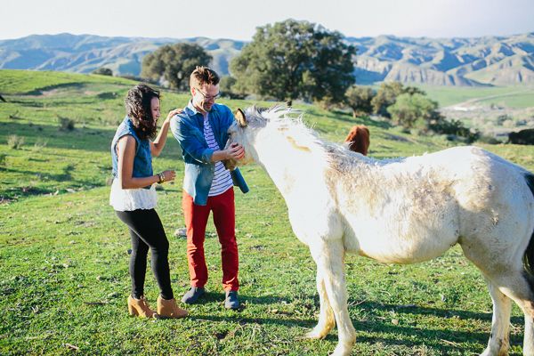 If we told you what happened during this engagement session you would never believe us.  Cami Jane went out with Christina and Tim to capture this exciting time in their lives and found one of the most beautiful spots in Orange County.  Not only did they have all the urban and rustic pieces they could ever imagine with this cool shed area, but as they ventured out into the fields they stumbled upon some wild horses grazing!  The horses even let them get close enough to touch and get some incredible images with.  We can’t get enough of how much this looks and feels like a dream!