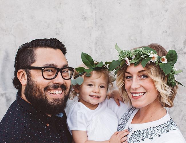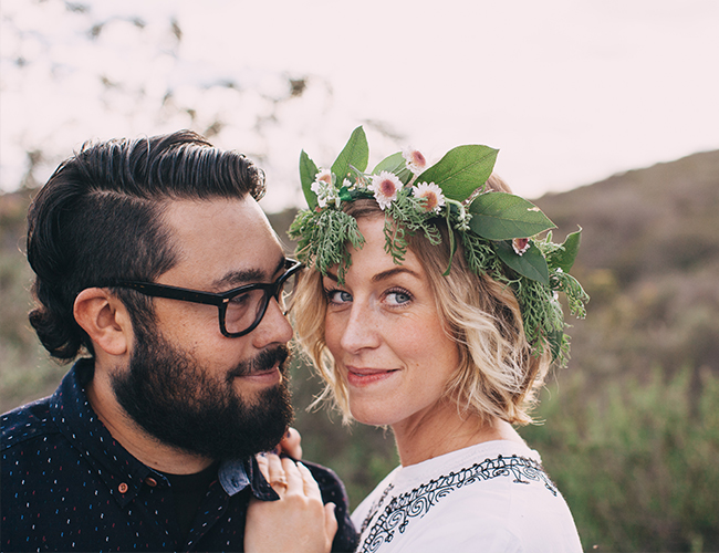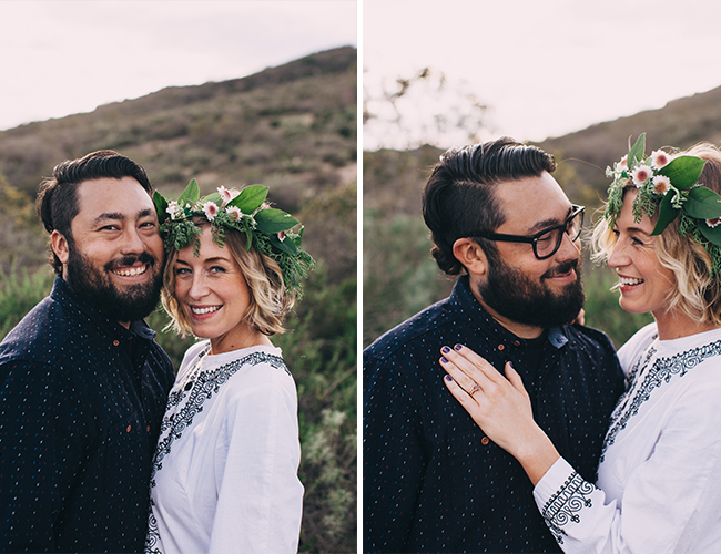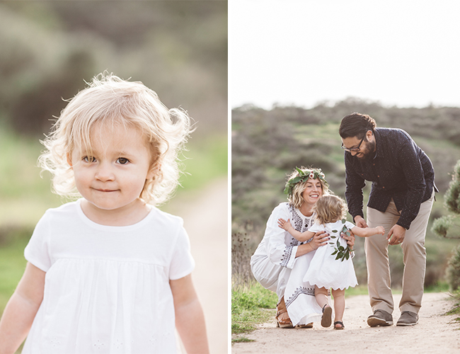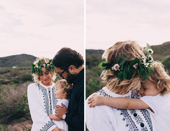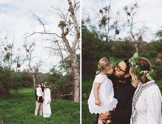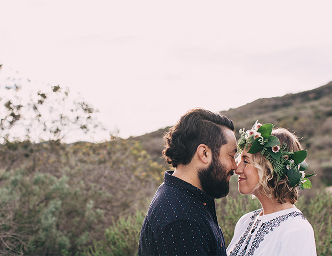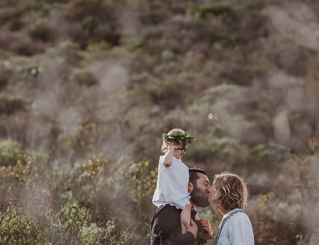 This intimate Laguna Hills Elopement on our wedding blog is ultra boho and oh-so pretty! Matching head wreaths and flowy white dresses fit the easy and carefree vibe of the day. Steve Cowell captured Mom, Dad, & daughter just moments after they were married in the beautiful mountainous setting. The shoot is filled with lots of love accordingly – and smiles & laughs too!