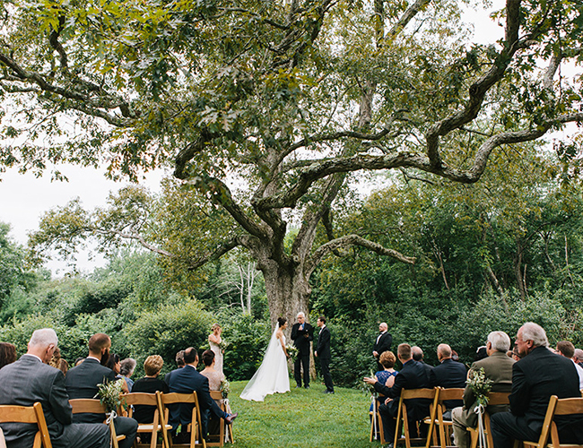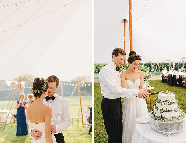 We were married underneath my favorite oak tree on the property, surrounded by our friends and family. For the reception I wore a crown of wildflowers, and our first dance was “Harvest Moon” By: Neil Young. As the evening set in, our shoes came off and we danced barefoot in the grass, the candles and bistro lights illuminated the tent with a warm glow amongst the night sky. The night ended with a brilliant firework display, almost descriptive of our joyous day filled with excitement and love.”