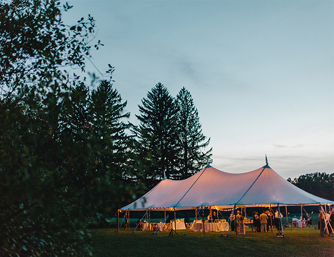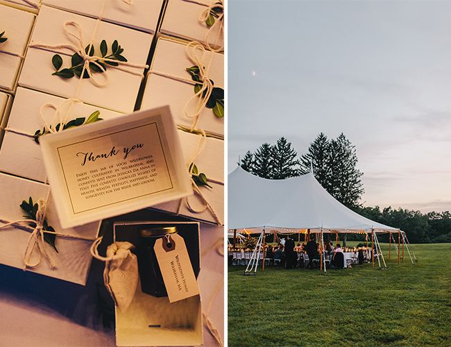 What we envisioned from the beginning was a tent wedding, in a field, surrounded by woods and mountains during summer. We also knew we didn’t want a ‘venue’ that would prepare everything for us. I am a film production designer and stylist and I wanted to customize our wedding to fit our vision. We realized after a few months of searching, that the perfect wedding location would be the farm in my hometown.