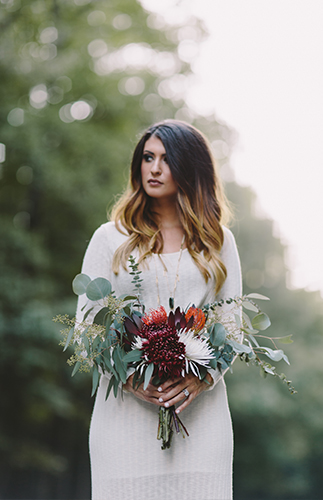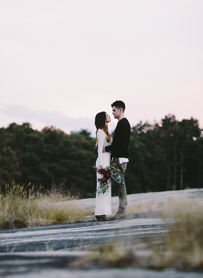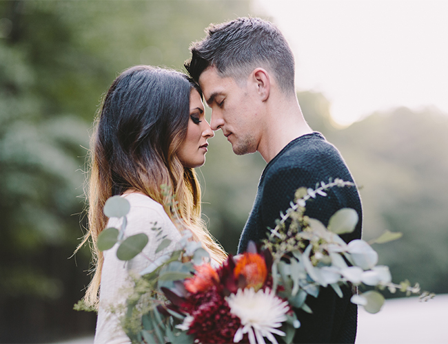 Inspired by fall and the mountains, this styled anniversary shoot beautifully captures the love between a husband and a wife, while also serving as inspiration for fall & winter wedding tones this year. Pairing neutral palette wear for the bride and groom with jewel toned florals forms the perfect combination of classic and now. We loved capturing this couple’s personality and intimacy for each other during our anniversary shoot. The dreamy woods and mountain landscape were so fun and unique to work with, as well!