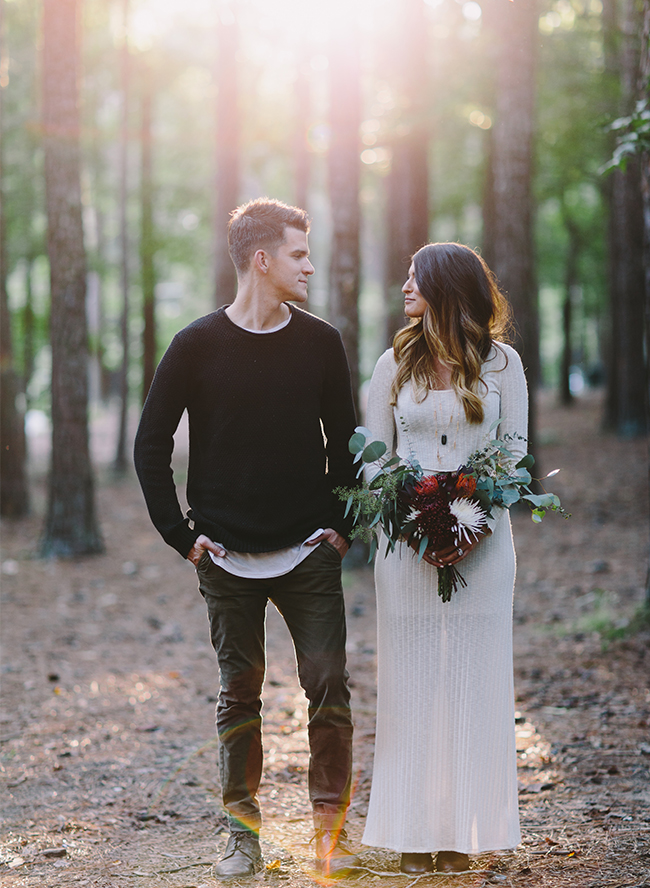 These two beauties on our wedding blog today celebrated their anniversary in one of the prettiest ways we have ever seen. In this gorgeous mountain wood. Donning a winter sweater and white sweater dress, the husband and wife took the season seriously. With a gorgeous red bouquet as prop, the shoot is perfect content for their holiday cards :). We can’t get enough of the beautiful scenery, the stunning images, and the model-esque couple looking oh-so in love! We love a good anniversary shoot – especially when they’re all cozy like this one.