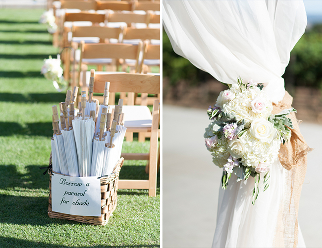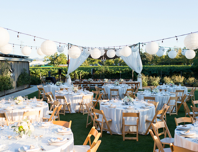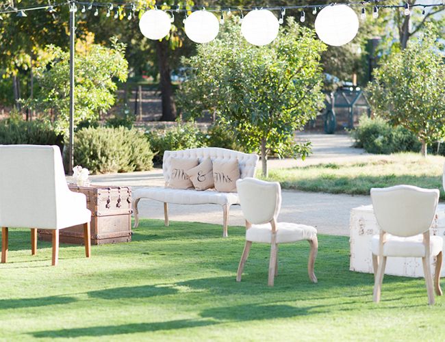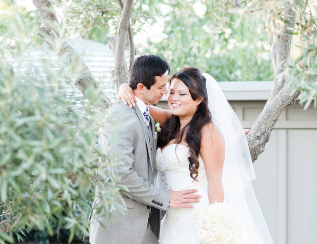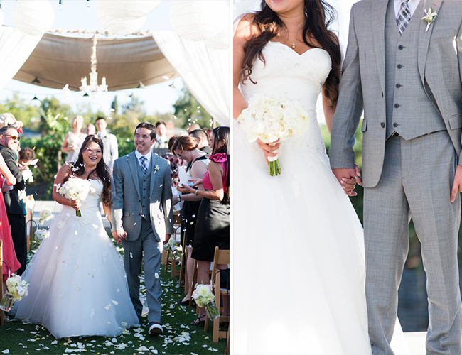 A neutral color scheme and a Napa Valley setting already make this wedding a sure stunner. Throw in lots of pretty personal details, overhead lanterns and twinkle lights, and dozens of rose petals and it’s an affair to remember. This wedding is as classic as they come, as the bride wore a two-piece veil and a stunning sweetheart ball gown and the reception was laden with white flowers and burlap favor candy bags! Take a peek at all the details and see how Caitlin O’Reilly Photography beautifully captured the day!