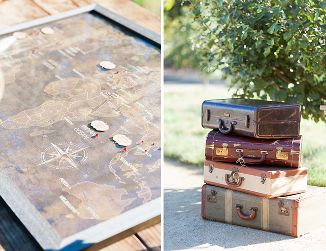 Ruth and Chris fell in love oversees on a group trip with friends. A few years later, Chris proposed in Paris. These two love visiting new places and chose to incorporate travel into their wedding. The vintage luggage, maps and globes were the perfect compliment to their soft color palette and romantic florals. In addition to their love of travel, these two are lawn game enthusiasts. Ruth even had custom bean bags made for corn hole! This wedding had so many special moments including a traditional tea ceremony to honor their families. The whole evening culminated with raging outdoor fire pits and s’mores. Perfect harvest season soiree in the Napa Valley!
