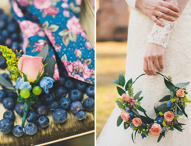 We also came across Beautiful Idiot Clothing‘s stunning handmade ties and they are local to Charlotte, NC where we are from so we knew we had to use their floral blue and pink tie. It fit perfectly with the style of the shoot. It’s always fun for us to get to style a wedding because we can be as creative as we want and go anywhere we want!