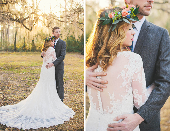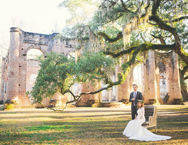 Joseph & Andrea of Connection Photography dreamed up some beautiful inspiration for us on our wedding blog today with this magnificent North Carolina wedding! What makes this shoot so unique is the Church ruins where it took place. The bride’s long sleeved lace gown and the romantic decor brought out even more beauty in the incredible location. Southern style and romance sing in perfect harmony to inspire couples everywhere!