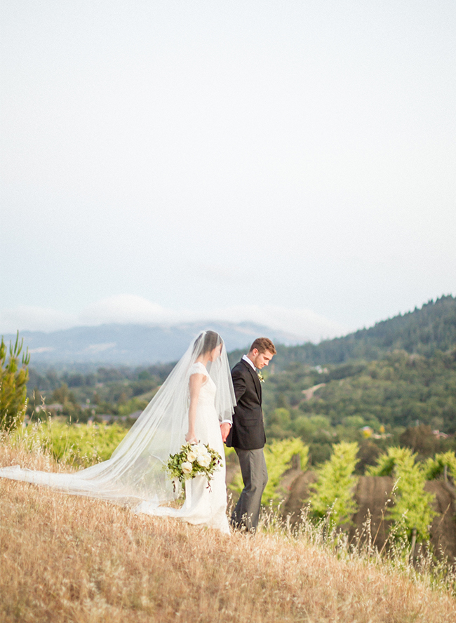 We love this pale & pretty colored wedding on our blog today. The sunset reception, cocktail hour overlooking the beautiful vineyard, and secret garden style venue are leaving us breathless. We fell head over heels for the Santa Rosa winery with it’s endless rows of grapes and towering trees. Guests sipped on the vineyard’s wine and enjoyed a delicious summer-meets-fall menu.