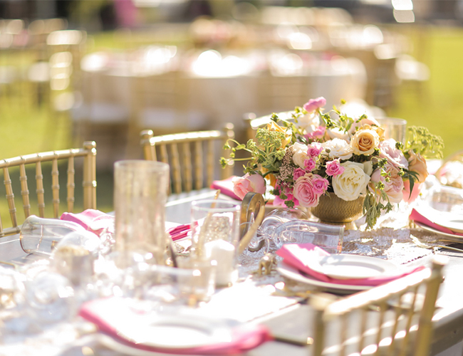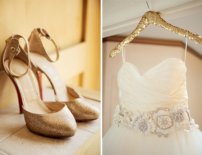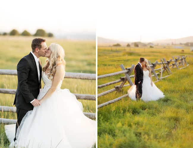 This couple took Texas to Utah with their pink and gold ranch wedding on our wedding blog today that incorporated elements from their Southern roots to make it extra personal. BBQ ribs and brisket tacos made it on the menu and gold horseshoes and farm animals guided guests to their table. But don’t be fooled this laid-back couple didn’t skimp out on the glamour! The pair stayed true to a pink and gold color scheme even down to the bride’s sparkly shoes! The bridesmaids donned dresses in all different styles in the same scheme while the bride stunned in a tulle Lazaro ball gown. The combination of white, cream, and pink flowers and the aisle runner of pink rose petals added an ultra soft and romantic touch that continued with “better together” sweetheart signs and a ruffled wedding cake. All these pretty details together with the beautiful mountain location made for a truly beautiful affair. Here’s how the bride’s vision came to life: