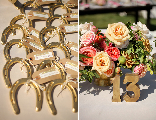 I started plotting my DIY activities months before I was engaged!!! I knew I wanted to have a country theme but wanted to steer away from anything burlap! Our colors were gold and pink, so ANYTHING and EVERYTHING that I could paint gold I did!! My Mom, and one of her best friends spent hours and hours crafting most of the decor. My two favorite things were our escort cards which were attached to gold horseshoes, as well as the place cards which were little cards tied to little gold animals farm animals. The little details were the most important to me!