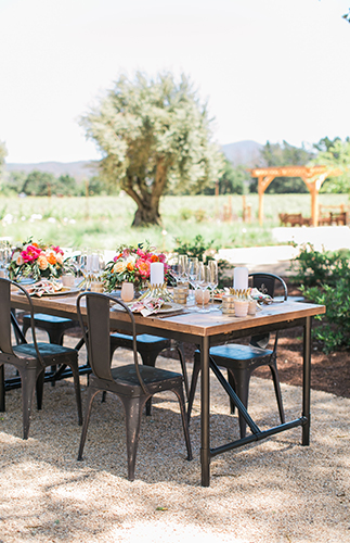 There’s something about a ranch wedding that emits a wonderfully rustic outdoors feel. Such was the inspiration for this shoot – we wanted to embrace the natural feel of the site while incorporating bright pops of color and earthy décor while maintaining a clean and sophisticated vibe.