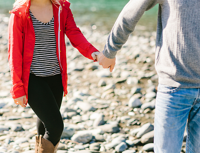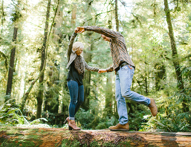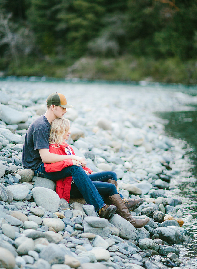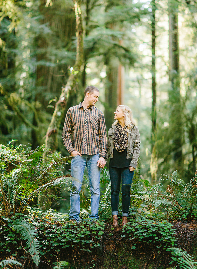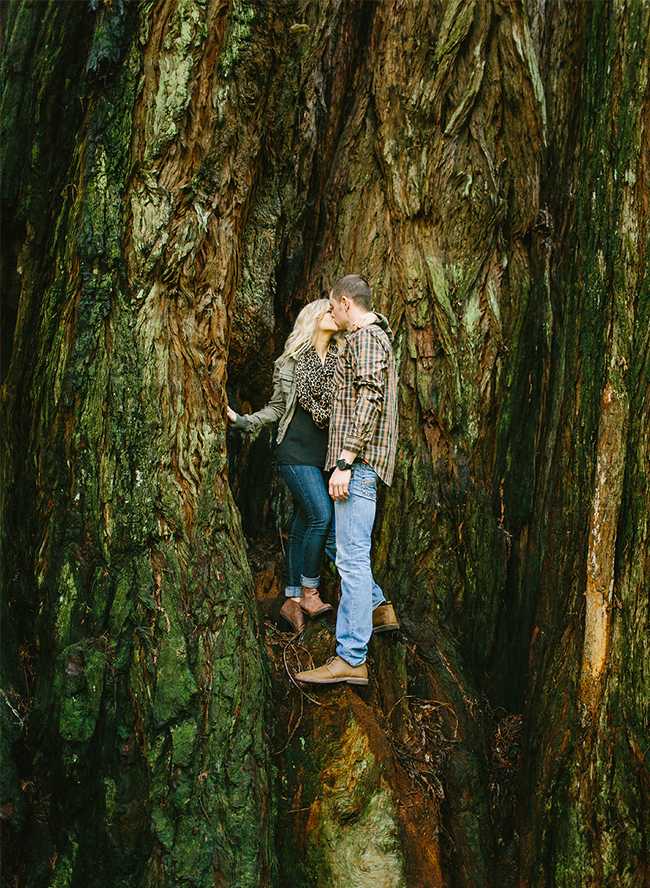 Some of our favorite engagement sessions happen in an incredible natural location – i.e. these Redwood Forest engagement pictures. This adorable couple and the gigantic trees behind them are gracing our wedding blog with their loveliness. In casual clothes, Kacie and Dylan walk across fallen trunks, along a rocky riverbed, and in the shade of the tall branches – caught on camera by Dawn Photography.