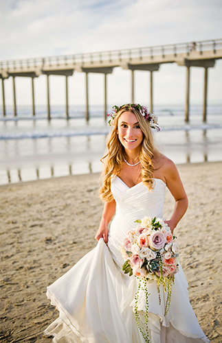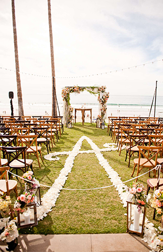 It’s a blush beauty. Today’s beach wedding on our wedding blog is set in the beautiful San Diego. The beachfront ceremony not only has a sandy view, but took place on a perfect blue-sky day with palm trees and market lighting overhead. Throw in the overwhelming (but amazing) amount of flowers and it’s a dream come true. The bride and groom sure think so too. Rachel Finn from I Do Weddings and Events helped make it all happen and is giving us ALL the details: