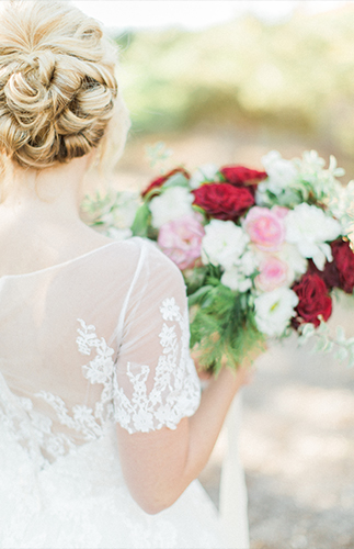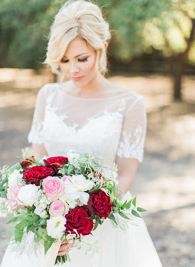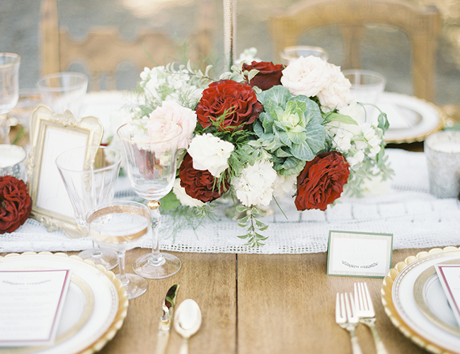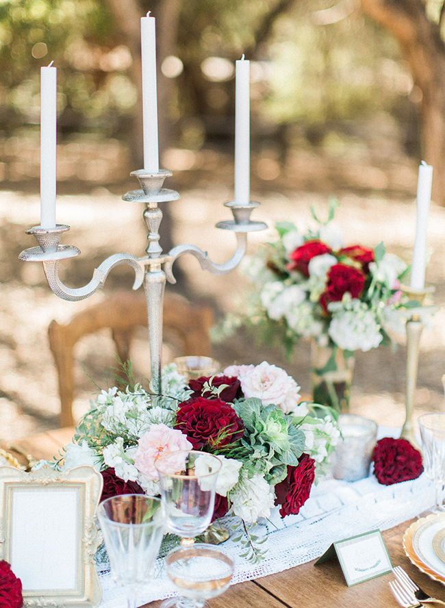 Happy December lovelies! This stunning wedding inspiration on our wedding blog is making us swoon, hear “Silver Bells” in our heads, and wish for a Winter wedding! Combine deep red garden roses, lace textures, and a candlelit sweetheart table and you get romanticism at its finest. The cathedral veil and cabbage infused arrangements put us over the edge. Hear from the talented team on how they were inspired to create such a stunning shoot!