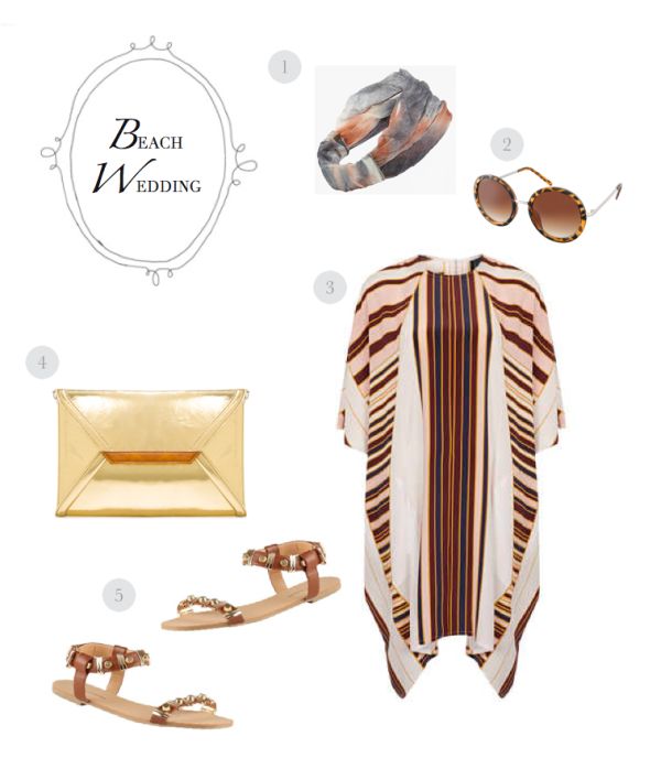 1. Nordstrom Ombré Head Wrap / 2. ASOS Round Sunglasses / 3. Topshop Silk Stripe Kaftan By Boutique / 4. JustFab Nightlife Clutch / 5. JCPenney Call It Spring™ Maderove Studded Flat Sandals