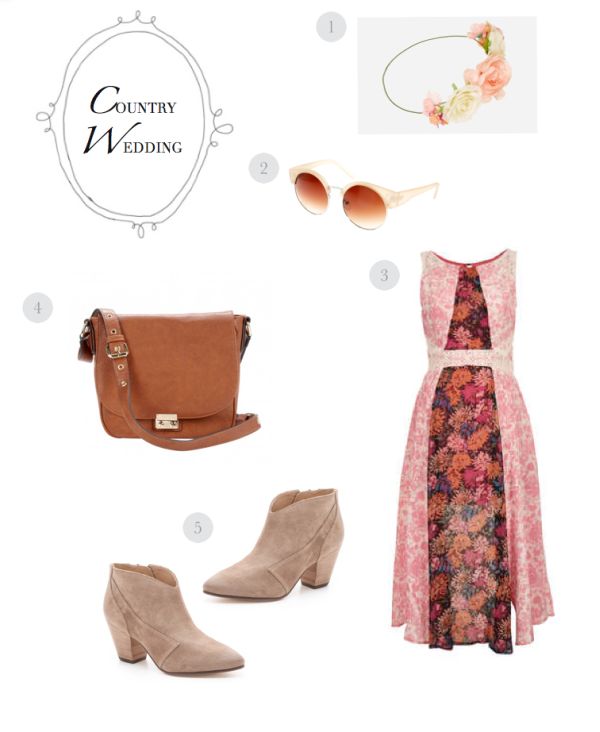 1. Nordstrom Floral Headband / 2. ASOS Half Frame Kitten Round Sunglasses / 3. Floral Floral Panel Dress / 4. Sole Society Sequoia Bag 5. Belle by Sigerson Morrison Yoko Booties