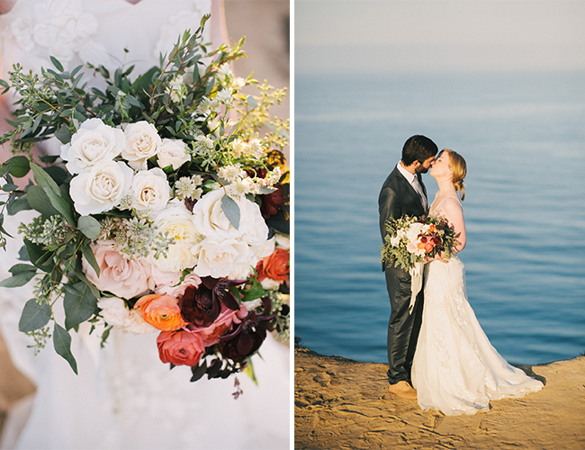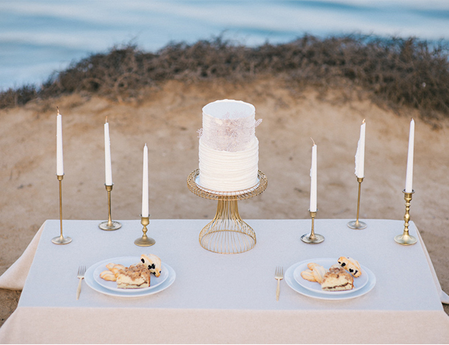 There is something so refreshing about an elopement. Forgetting all of the fuss and commotion that is usually involved with a big wedding and sneaking away with your sweetheart early in the morning to say “I do” is pretty much as romantic as it gets! The Glider Port in Torrey Pines offered a breathtaking backdrop that also allowed the beautifully simple details to show through. We loved adding details like the handmade oyster shell book to hold the vows and Lydia’s spin on a breakfast spread for this early morning coastal celebration!